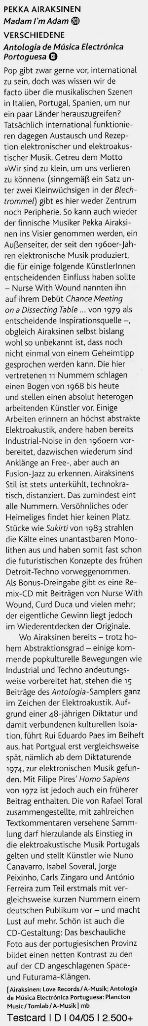 Sound Projector issue 13, January 2005,